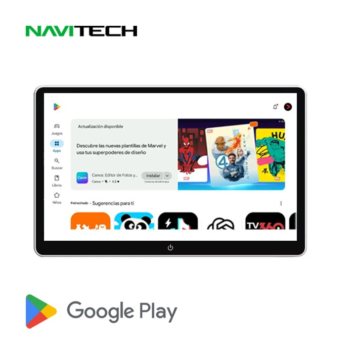 Equipada con Android, esta pantalla permite instalar tus aplicaciones favoritas desde Google Play Store. Su procesador octa-core y almacenamiento de 32GB aseguran fluidez y espacio suficiente para videos, música o juegos.